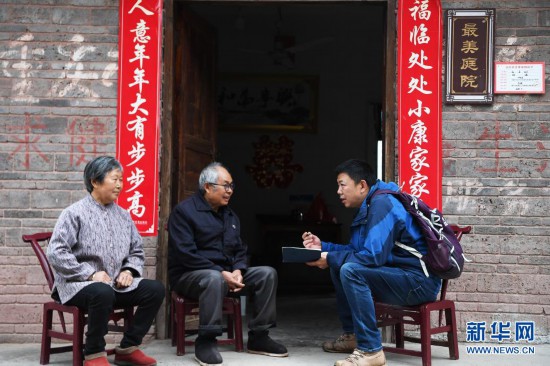 3月30日,王涛(右)与村民赵长庆(中)、刘昌菊夫妇交谈。